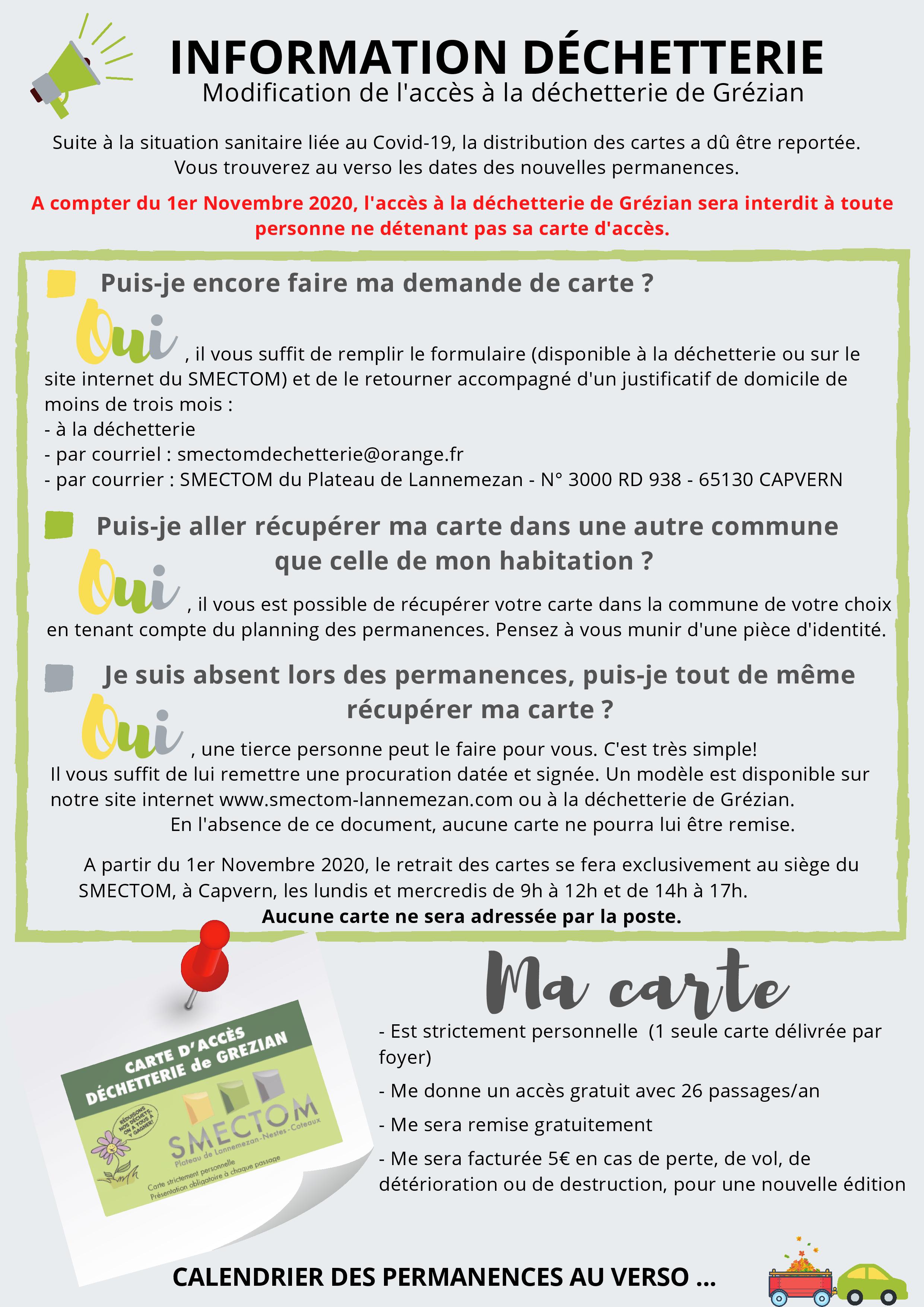 Carte d'accès la déchetterie de Grézian Retrouvez toutes les informations directement sur le site du SMECTOM